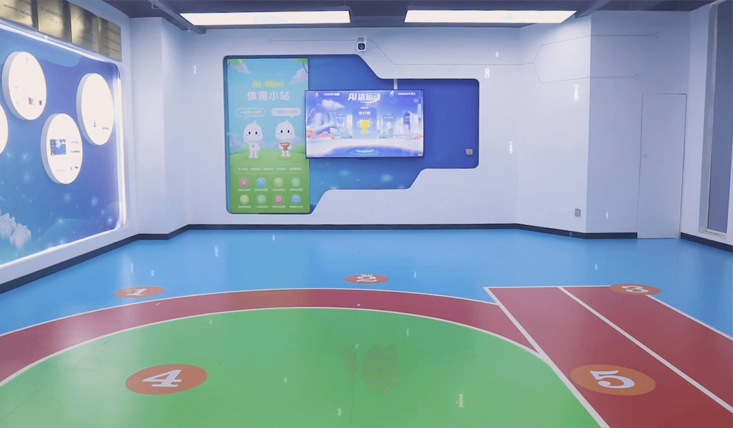 结合高集成摄像头及显示大屏产品形态,在学校固定锻炼场所部署,实现自动标定测试区域,开机即用。